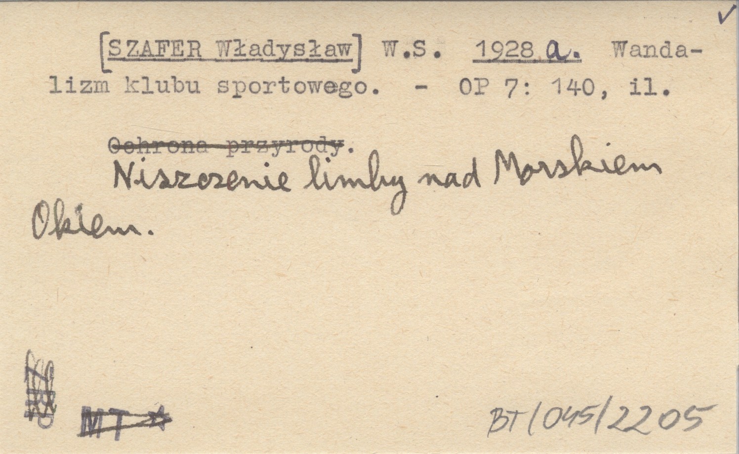 W. S. [SZAFER Władysław] 1928 a Wandalizm klubu sportowego.
