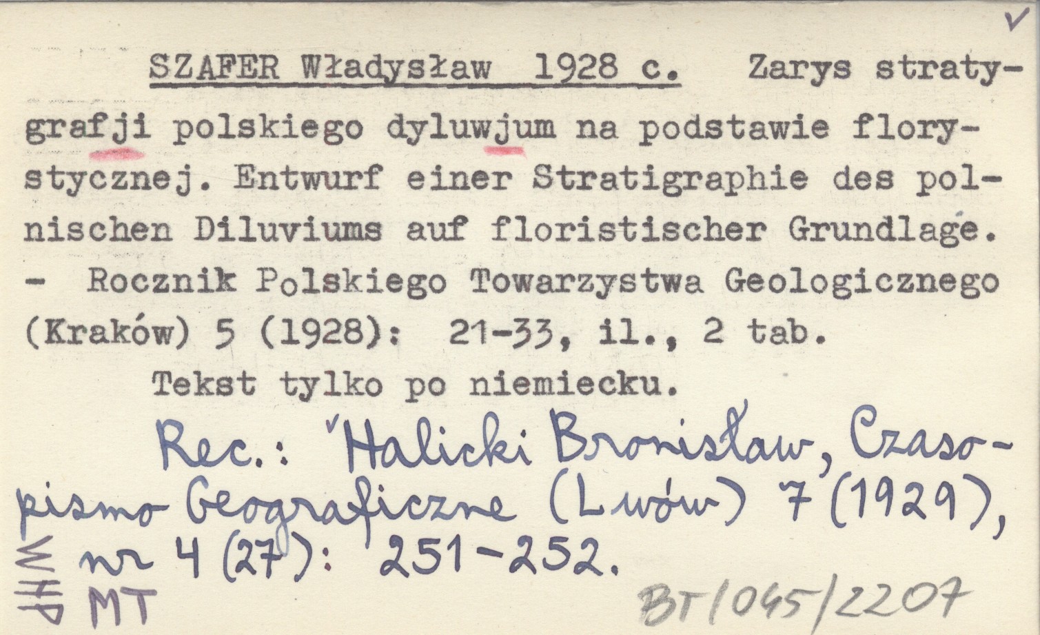 SZAFER Władysław 1928 c Zarys stratygrafji polskiego dyluwjum na podstawie florystycznej. Entwurf einer Stratigraphie des polnischen Diluviums auf floristischer Grundlage.