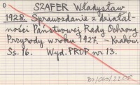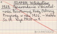 SZAFER Władysław 1928 Sprawozdanie z 30. Posiedzenia Wydziału P.R.O.P. we Lwowie 5 IX 1926.