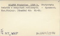 SZAFER Władysław 1928 b Statystyka kwiatów w zespołach roślinnych.
