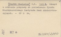 W. S. [SZAFER Władysław] 1929 a Odczyt o ochronie przyrody na posiedzeniu Zjazdu Międzynarodowego Instytutu Nauk Administracyjnych.