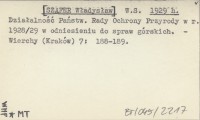 W. S. [SZAFER Władysław] 1929 h Działalność Państw. Rady Ochrony Przyrody w r. 1928/29 w odniesieniu do spraw górskich.