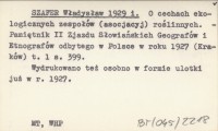 SZAFER Władysław 1929 i O cechach ekologicznych zespołów (asocjacyj) roślinnych.