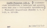 SZAFER Władysław 1929 k [O zlodowaceniach tatrzańskich, o badaniach nad paleoklimatem Tatr oraz o bibliografii tatrzańskiej.]