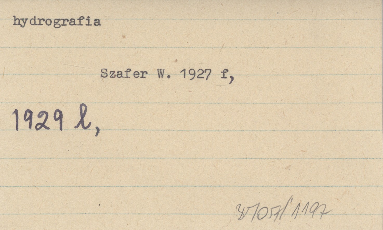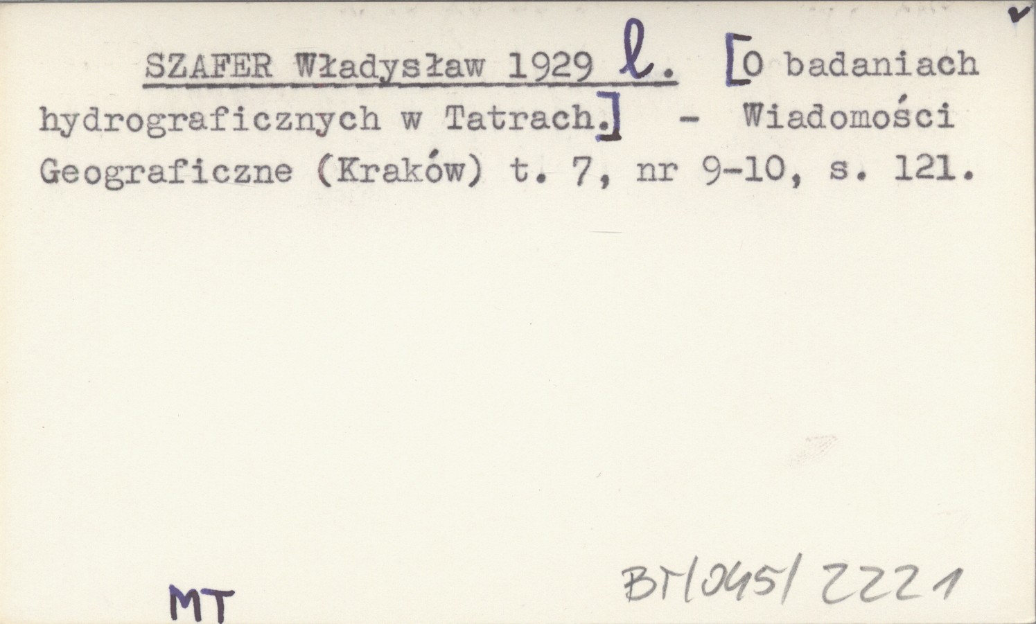 SZAFER Władysław 1929 l [O badaniach hydrograficznych w Tatrach.]