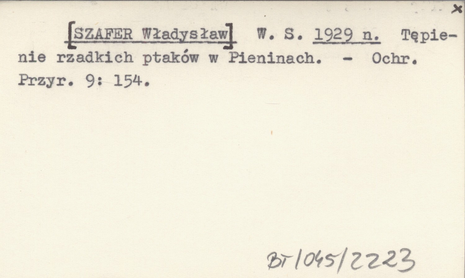 W. S. [SZAFER Władysław] 1929 n Tępienie rzadkich ptaków w Pieninach.