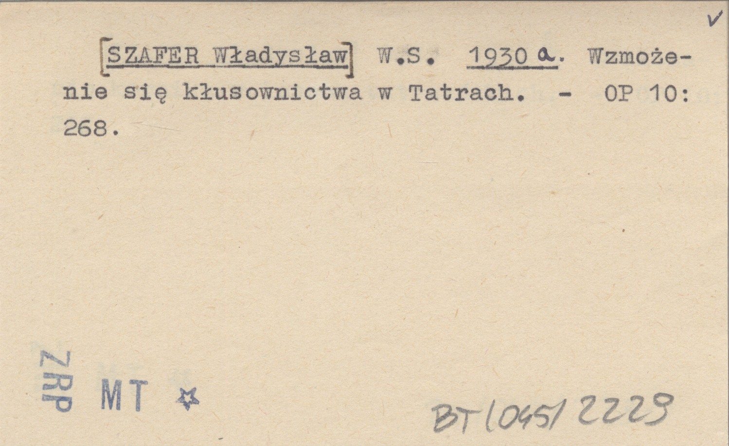 W. S. [SZAFER Władysław] 1930 a Wzmożenie się kłusownictwa w Tatrach.