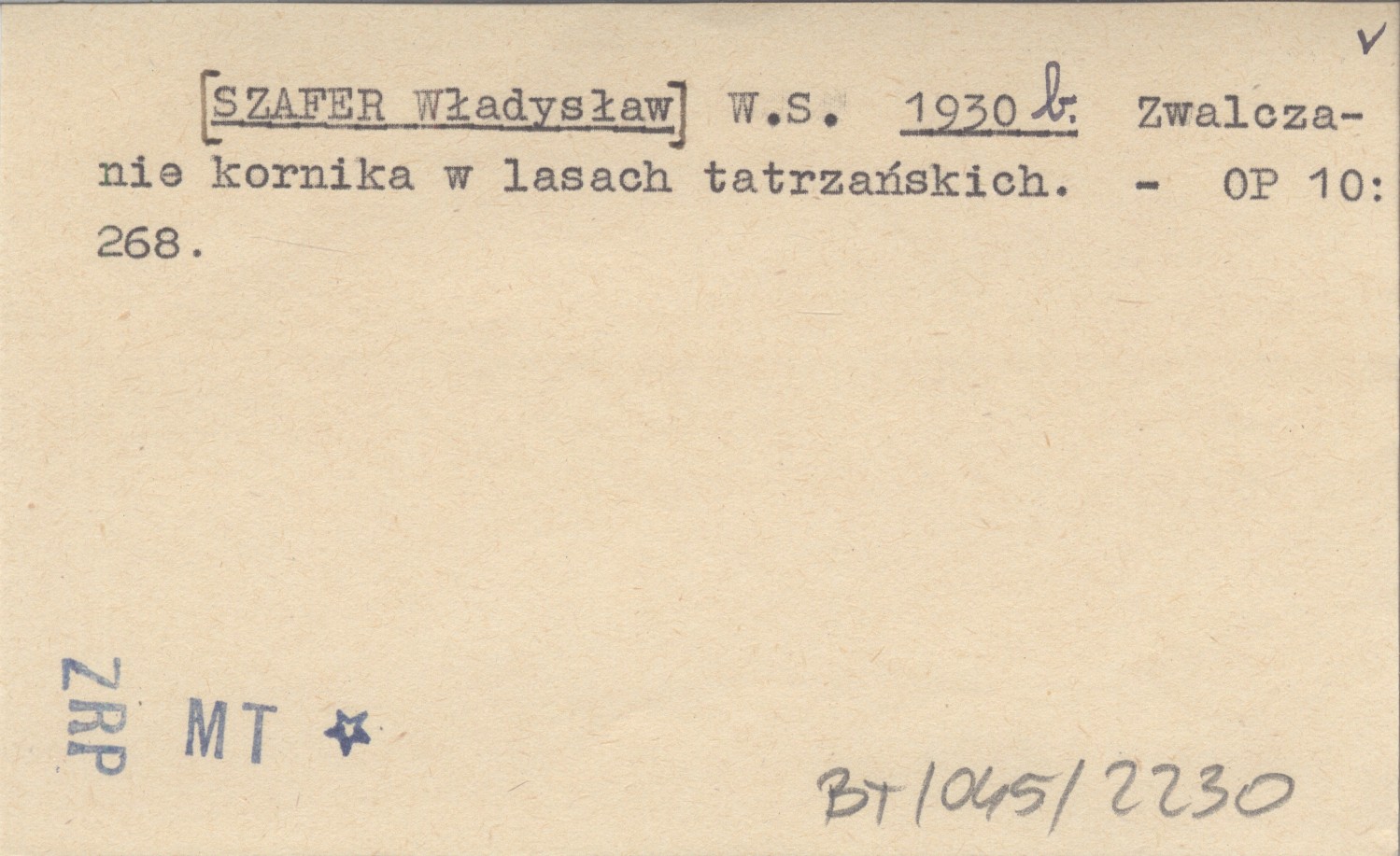 W. S. [SZAFER Władysław] 1930 b Zwalczanie kornika w lasach tatrzańskich.