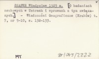SZAFER Władysław 1929 m [O badaniach naukowych w Tatrach i sprawach z tym związanych.]