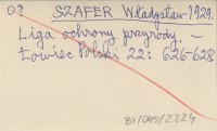 SZAFER Władysław 1929 Liga ochrony przyrody.
