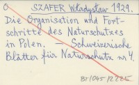 SZAFER Władysław 1929 Die Organisation und Fortschritte des Naturschutzes in Polen.