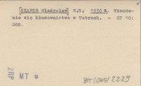 W. S. [SZAFER Władysław] 1930 a Wzmożenie się kłusownictwa w Tatrach.