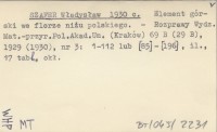 SZAFER Władysław 1930 c Element górski we florze niżu polskiego.