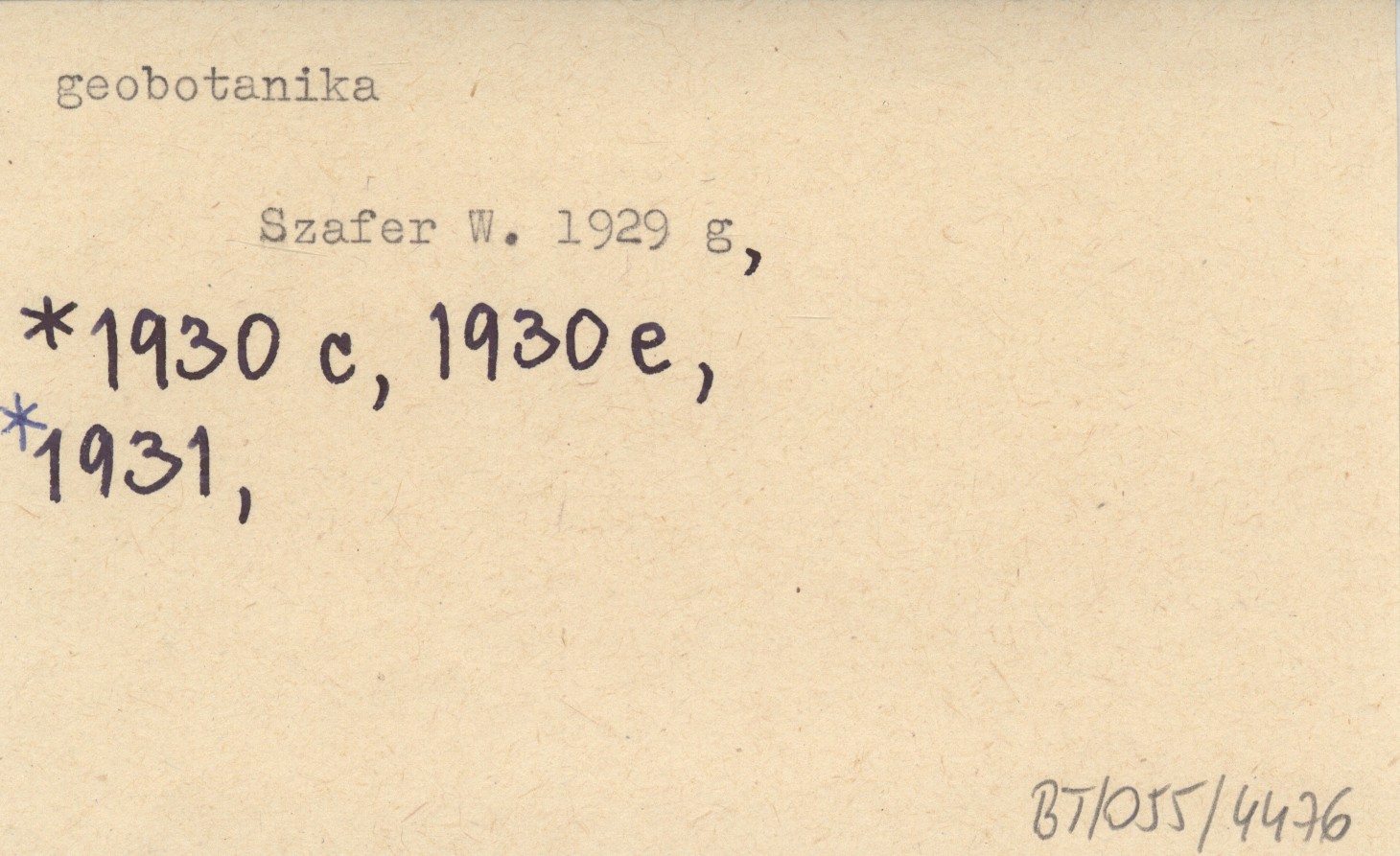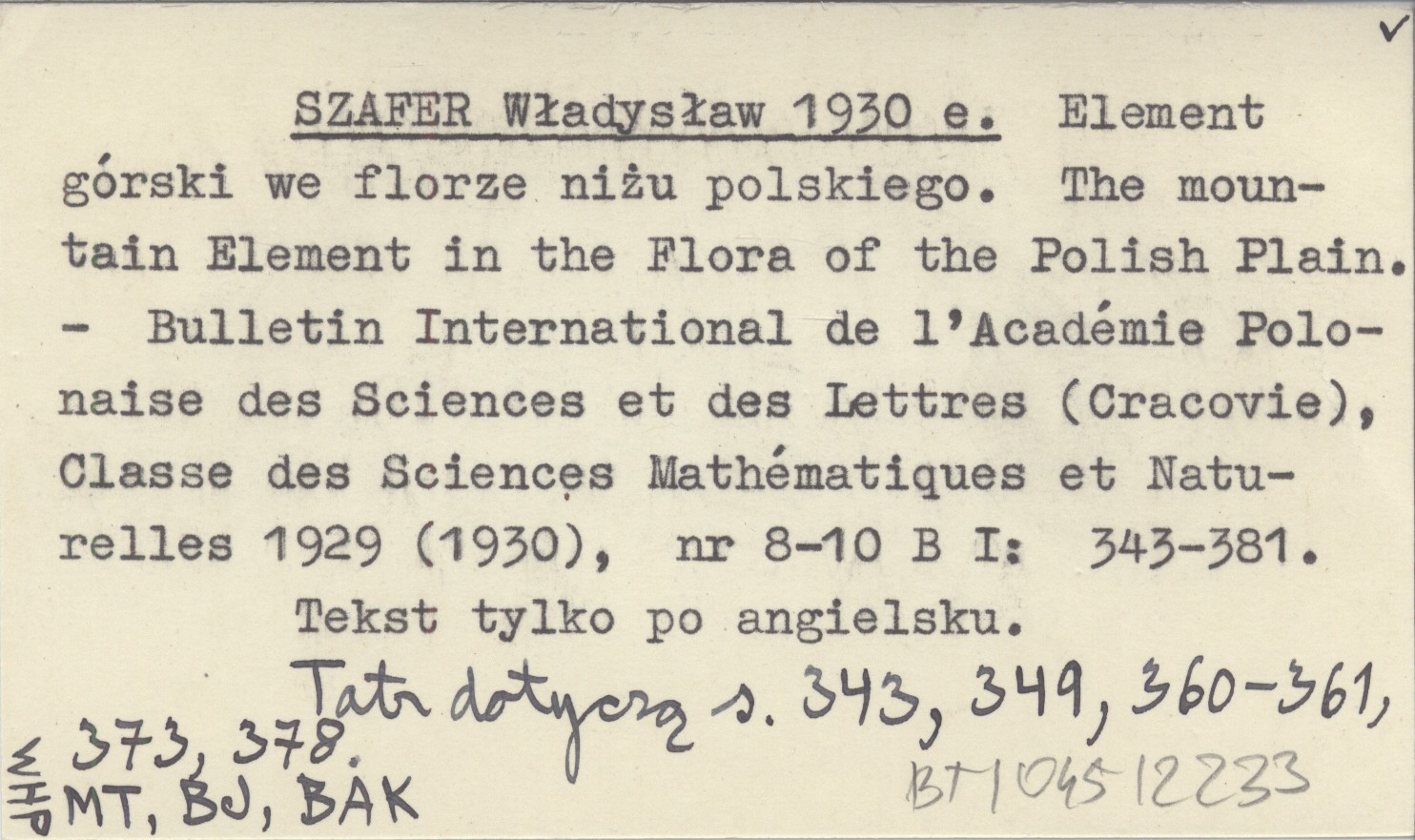 SZAFER Władysław 1930 e Element górski we florze niżu polskiego. The mountain Element in the Flora of the Polish Plain.