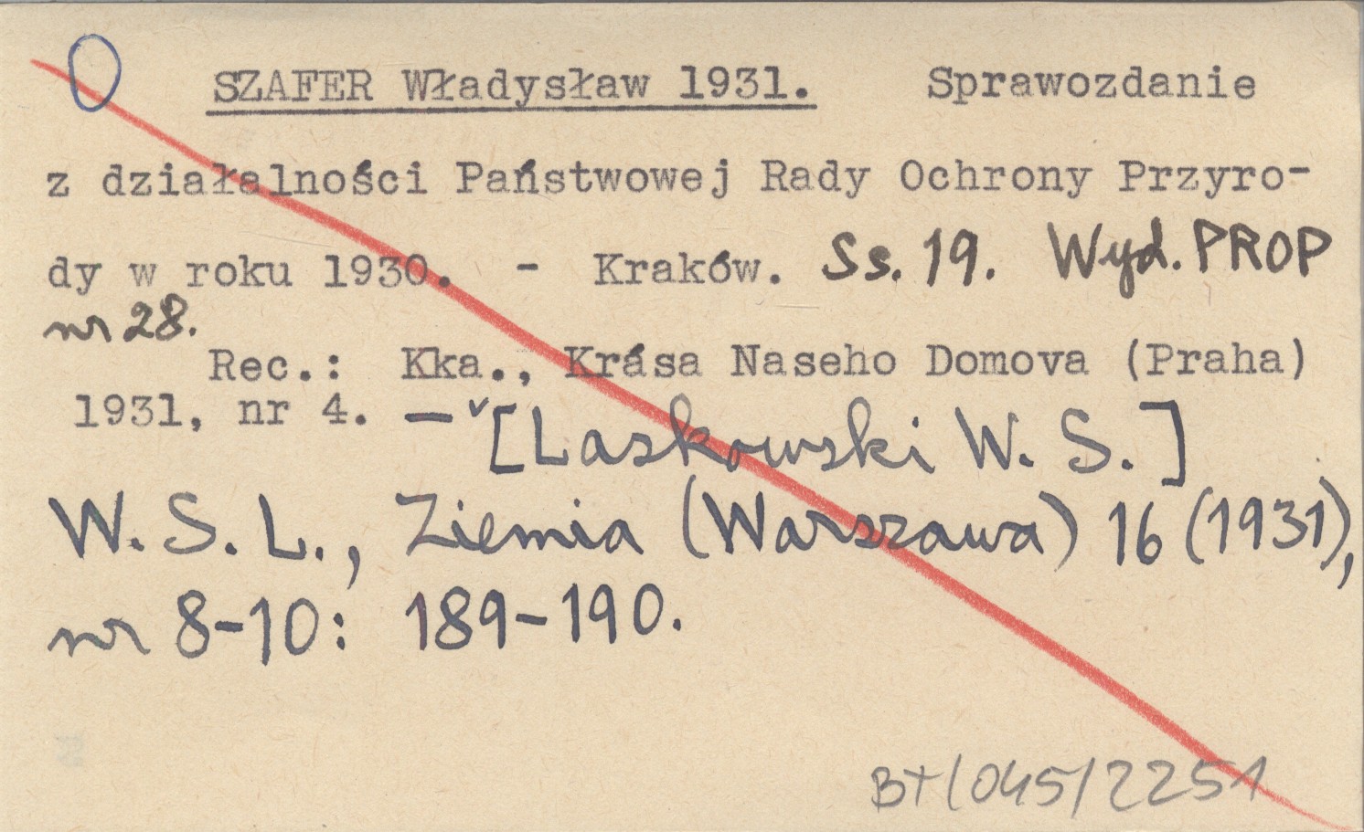 Państwowa Rada Ochrony Przyrody, Kraków , Nr 28, 19 s. REC: Kka., Krása Naseho Domova (Praha) 1931, nr 4 ; [LASKOWSKI W. S.] W. S. L., Ziemia (Warszawa) 16 (1931), nr 8-10: 189-190 ;