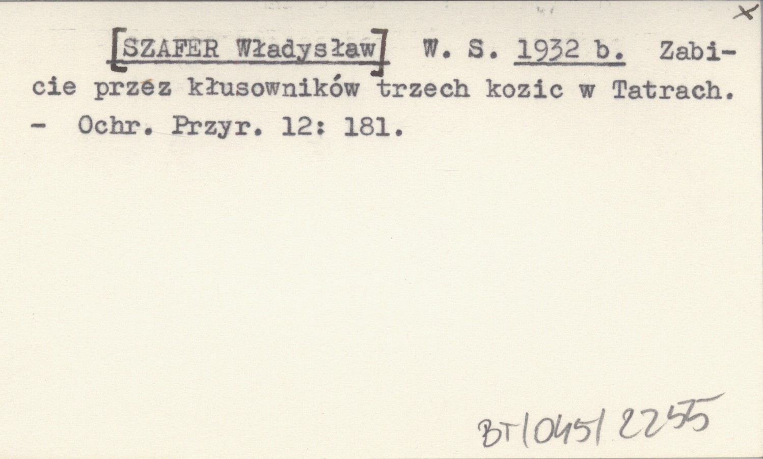 W. S. [SZAFER Władysław] 1932 b Zabicie przez kłusowników trzech kozic w Tatrach.