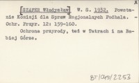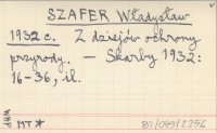 SZAFER Władysław 1932 f Działalność Państwowej Rady Ochrony Przyrody w r. 1932 w odniesieniu do spraw górskich.