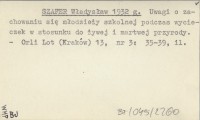 SZAFER Władysław 1932 g Uwagi o zachowaniu się młodzieży szkolnej podczas wycieczek w stosunku do żywej i martwej przyrody.