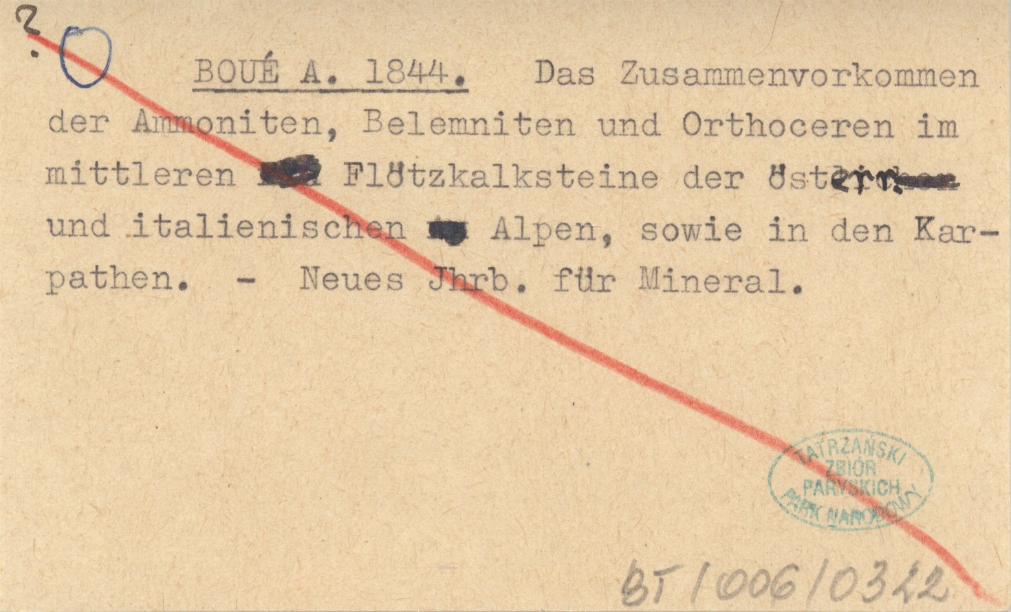 BOUÉ A. 1844 Das Zusammenvorkommen der Ammoniten, Belemniten und Orthoceren im mittleren Flötzkalksteine der öst. und italianischen Alpen, sowie in den Karpathen.