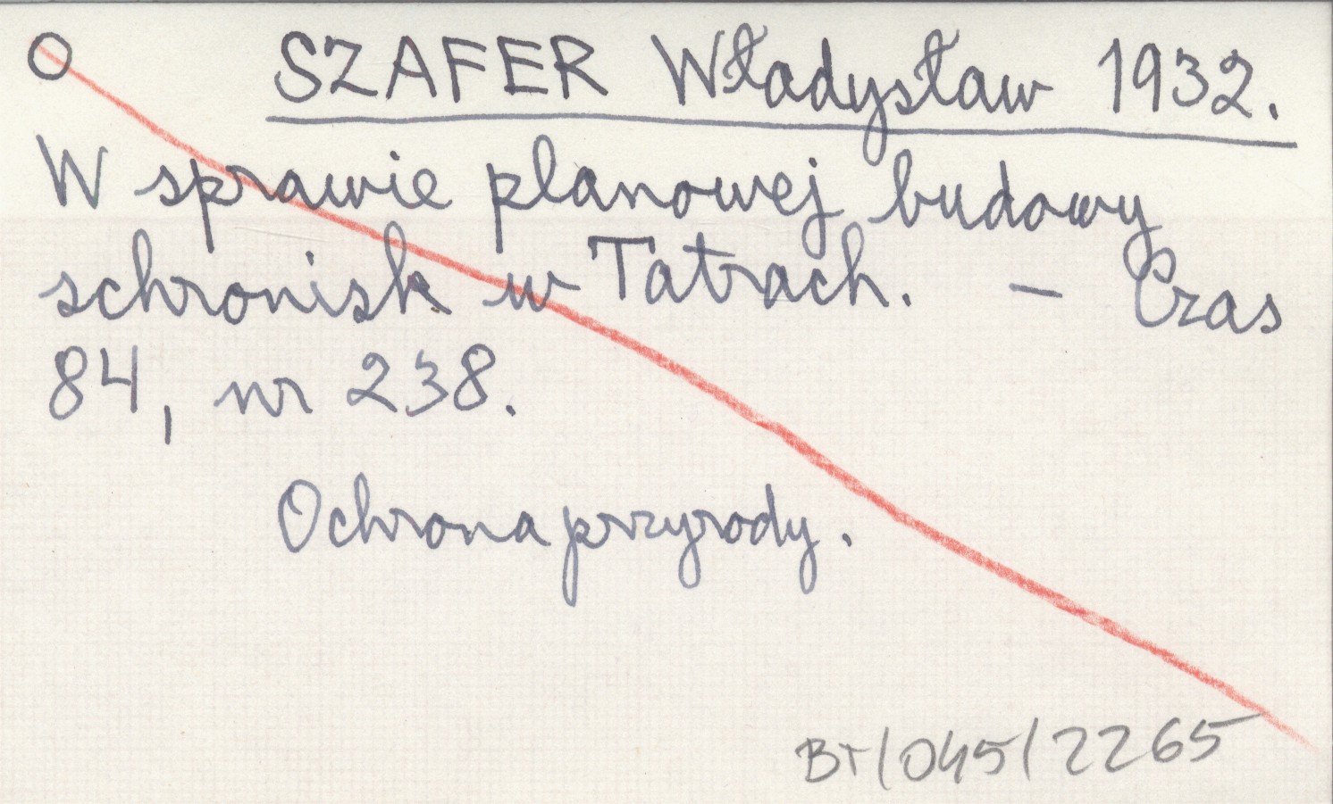 SZAFER Władysław 1932 W sprawie planowanej budowy schronisk w Tatrach.