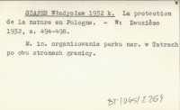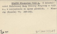 SZAFER Władysław 1933 a Z działalności Państwowej Rady Ochrony Przyrody w 1933 r., w odniesieniu do spraw górskich.