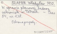 SZAFER Władysław 1932 W sprawie planowanej budowy schronisk w Tatrach.