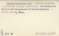 SZAFER Władysław 1933 Ochrona przyrody a postulaty higjeny społecznej.