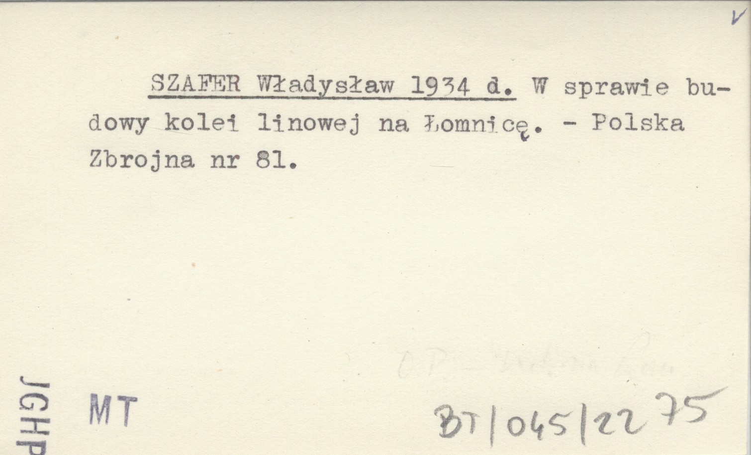 SZAFER Władysław 1934 d W sprawie budowy kolei linowej na Łomnicę.