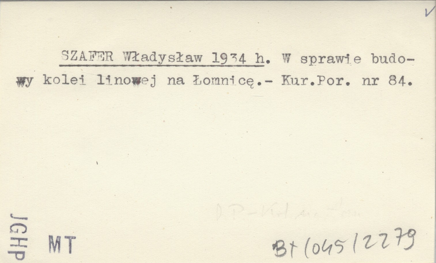 SZAFER Władysław 1934 h W sprawie budowy kolei linowej na Łomnicę.