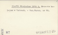 SZAFER Władysław 1934 i Przeciw kolejom w Tatrach.