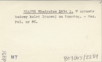 SZAFER Władysław 1934 j W sprawie budowy kolei linowej na Łomnicę.