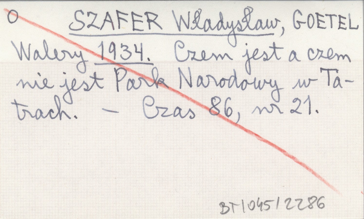 SZAFER Władysław GOETEL, Walery. ; 1934 Czem jest a czem nie jest Park Narodowy w Tatrach.
