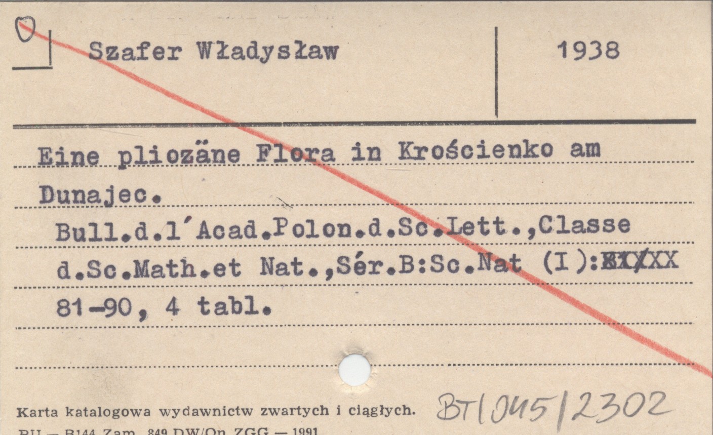 SZAFER Władysław 1938 Eine pliozäne Flora in Krościenko am Dunajec.
