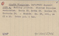 SZAFER Władysław PAWŁOWSKI, Bogumił. ; 1939 a Rośliny polskie. Plantae Poloniae exsiccatae. Seria II. Setka IV. Series II. Centuria IV.