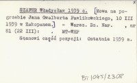 SZAFER Władysław 1939 c [Mowa na pogrzebie Jana Gwalberta Pawlikowskiego, 10 III 1939 w Zakopanem.]