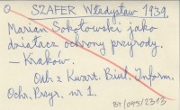 SZAFER Władysław 1939 Marian Sokołowski jako działacz ochrony przyrody.