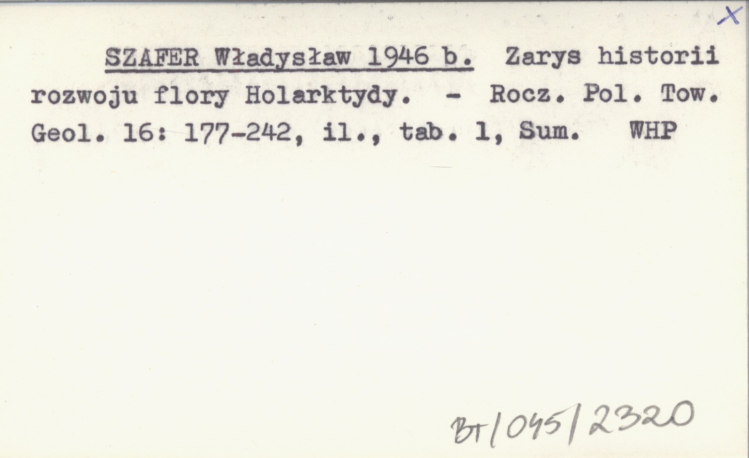 SZAFER Władysław 1946 b Zarys historii rozwoju flory Holarktydy.