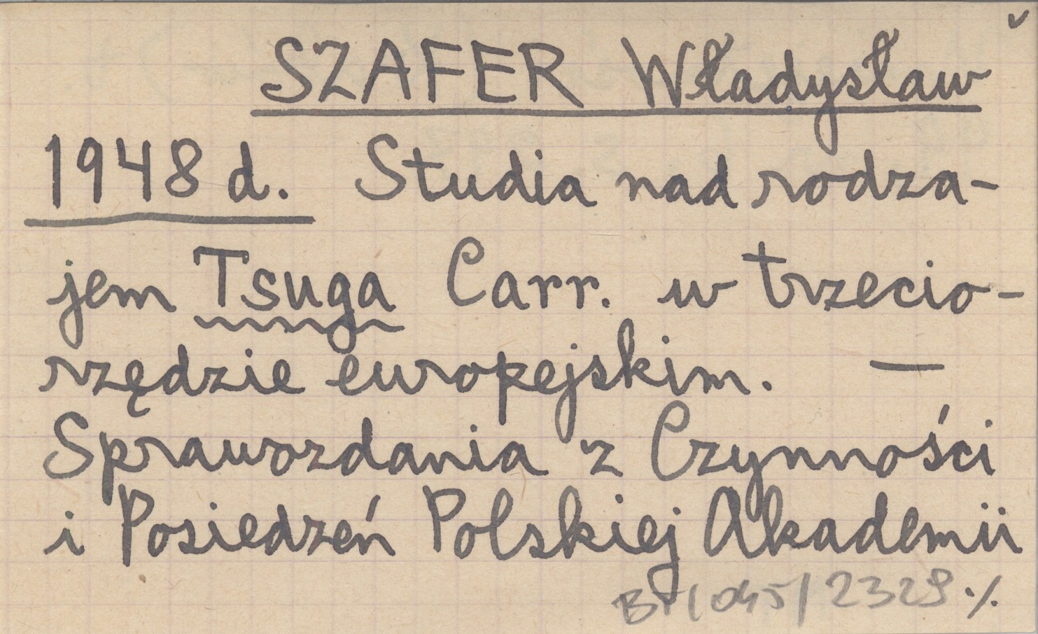 SZAFER Władysław 1948 d Studia nad rodzajem Tsuga Carr. w trzeciorzędzie europejskim.