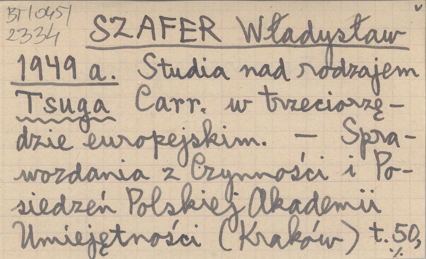SZAFER Władysław 1949 a Studia nad rodzajem Tsuga Carr. w trzeciorzędzie europejskim.