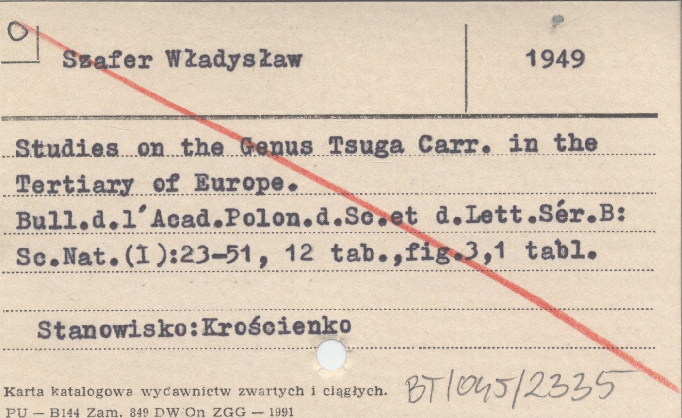 SZAFER Władysław 1949 Studies on the Genus Tsuga Carr. in the Tertiary of Europe.