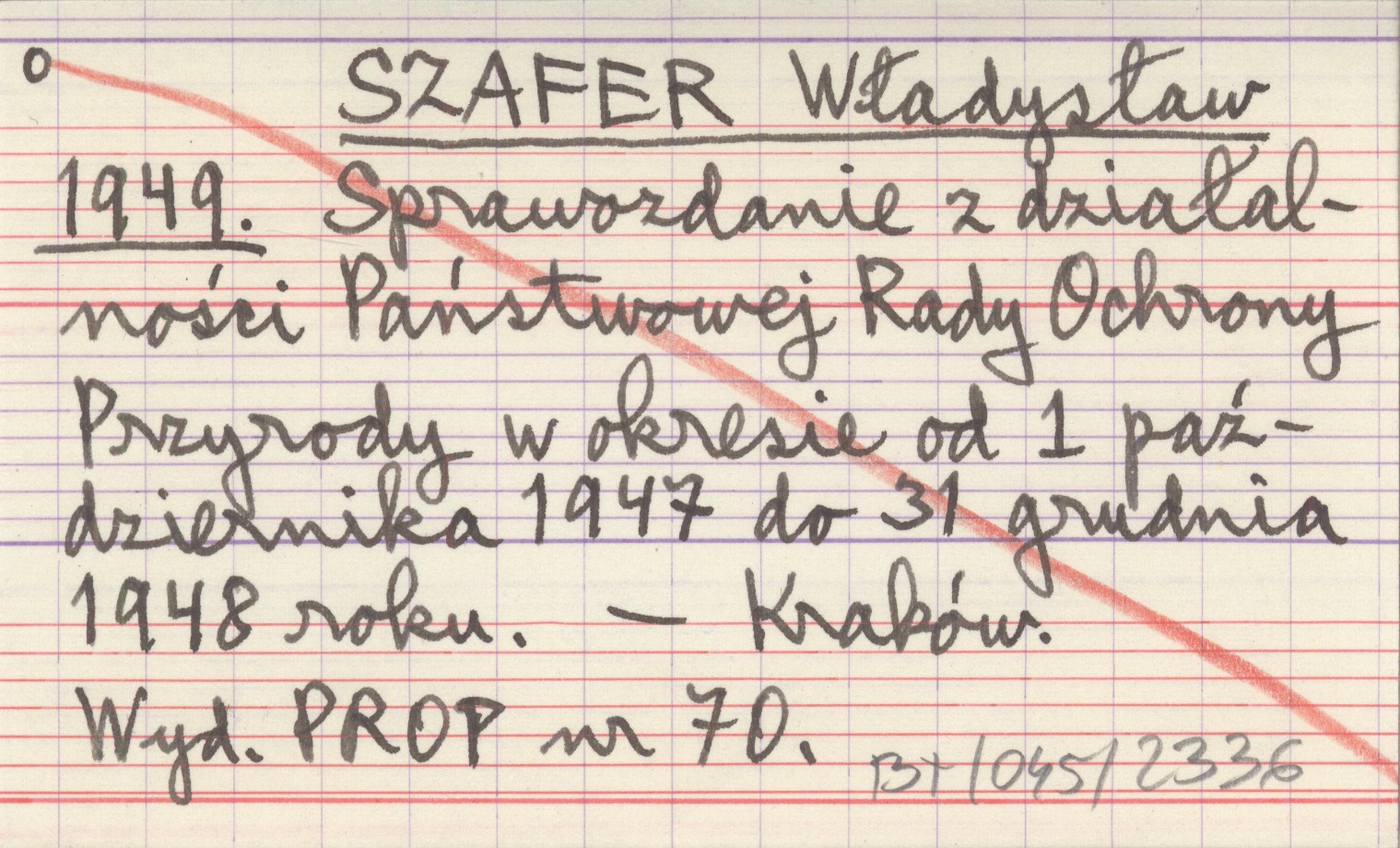 SZAFER Władysław 1949 Sprawozdanie z działalności Państwowej Rady Ochrony Przyrody w okresie od 1 października 1947 do 31 grudnia 1948 roku.