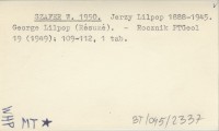 SZAFER W. 1950 Jerzy Lilpop 1888-1945. George Lilpop (Résumé).