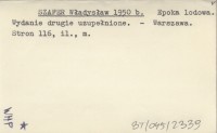 SZAFER Władysław 1950 e [...] wyniki swych prac nad miocenem i pliocenem Podhala.
