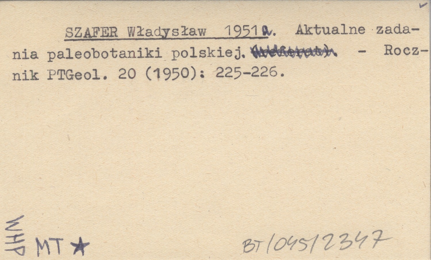 SZAFER Władysław 1951 a Aktualne zadania paleobotaniki polskiej.