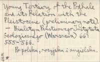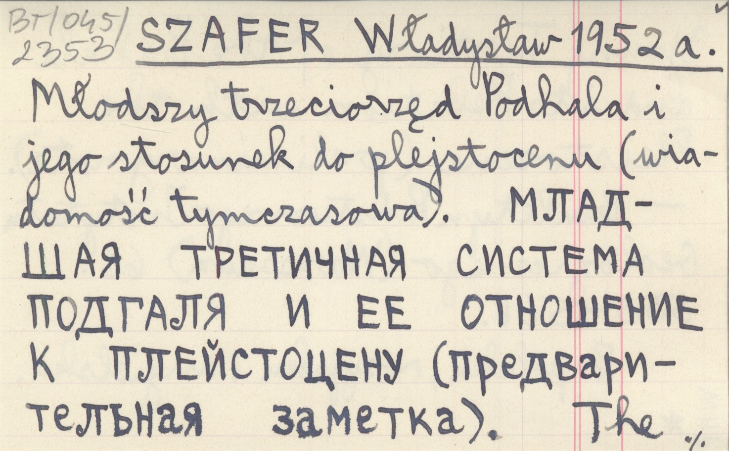 SZAFER Władysław 1952 a Młodszy trzeciorzęd Podhala i jego stosunek do plejstocenu (wiadomość tymczasowa). Mladšaja treticnaja sistema podgalja i ee otnošenie k plejstocenu (predvaritel'naja zametka). The Young of the Podhale and its Relation with the Pleistocene (preliminary note).