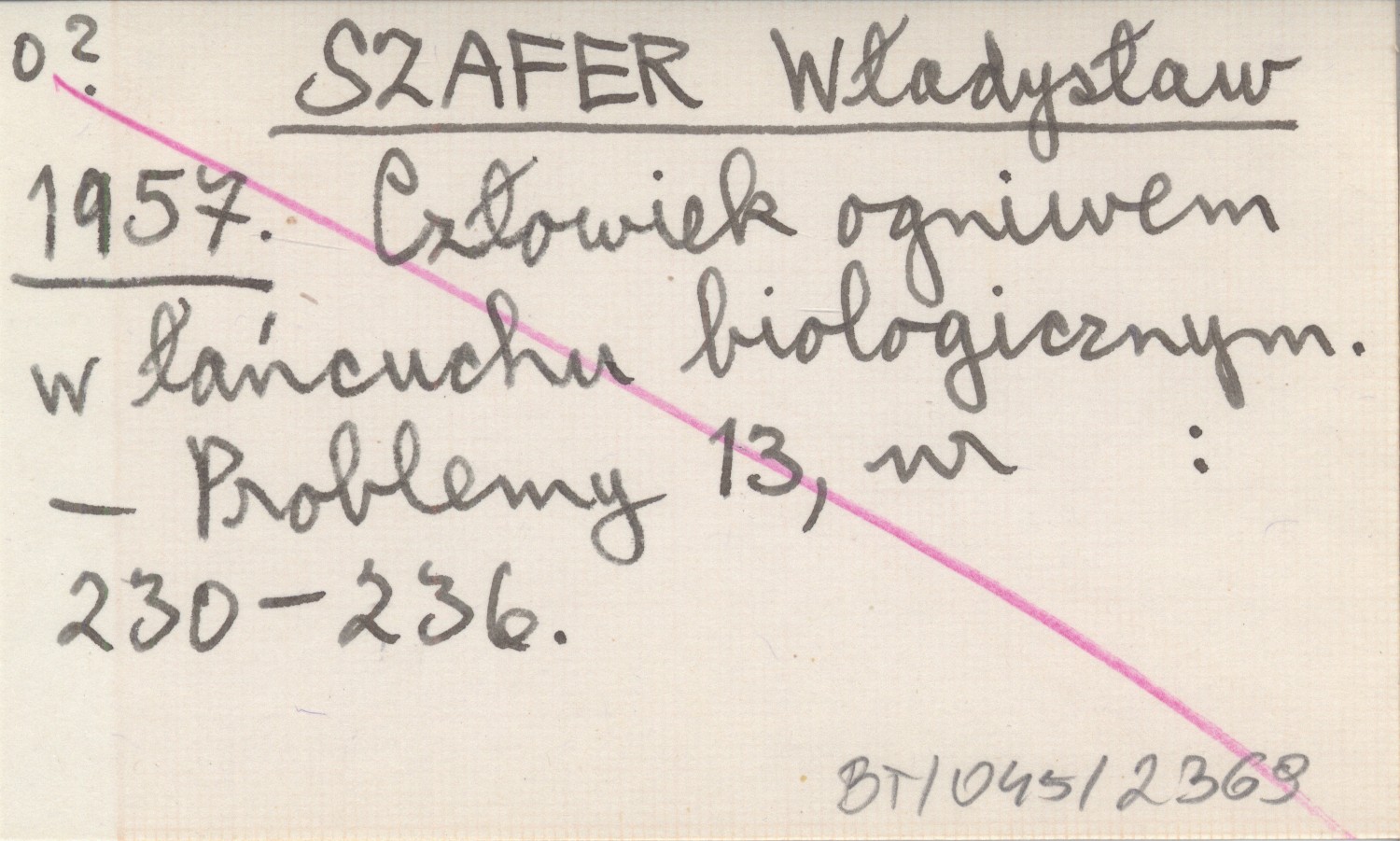 SZAFER Władysław 1957 Człowiek ogniwem w łańcuchu biologicznym.