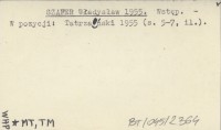 SZAFER Władysław 1956 a [O słowackim Tatrzańskim Parku Narodowym.]