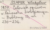 SZAFER Władysław 1957 Człowiek ogniwem w łańcuchu biologicznym.