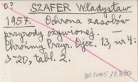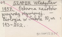 SZAFER Władysław 1957 Ochrona zasobów przyrody ożywionej.