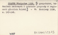 SZAFER Władysław 1958 [O gospodarce, badaniach naukowych i ochronie przyrody w regionach górskich Polski.]
